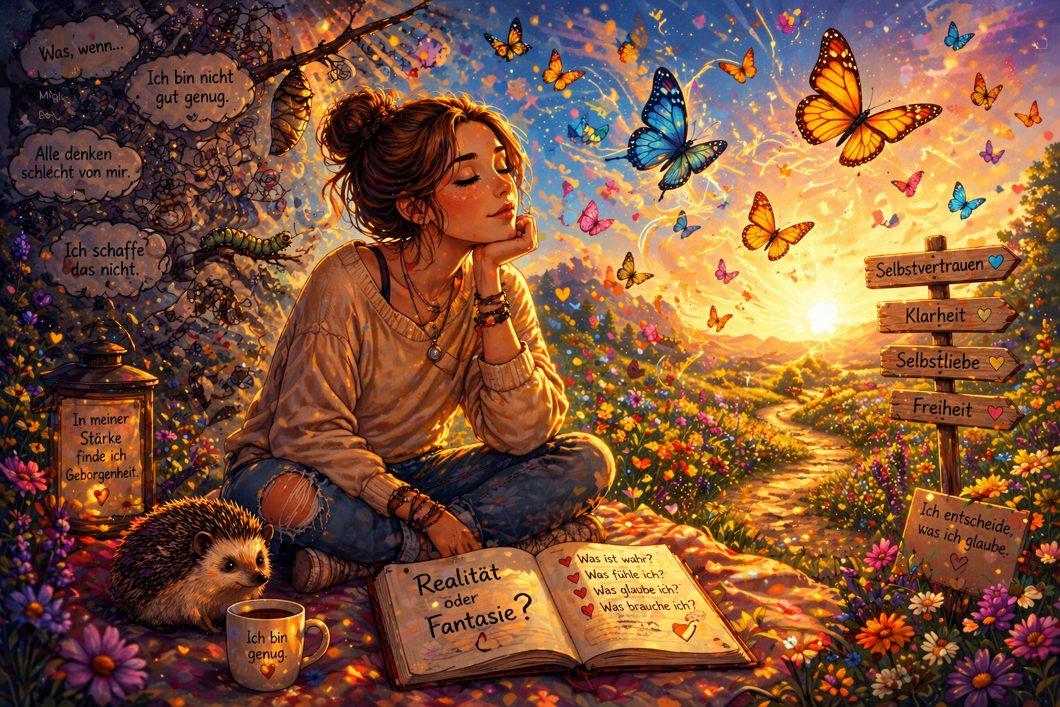 Und ganz wichtig: Geh liebevoll mit dir um. Denn hinter vielen Gedanken steckt kein „Fehler“ – sondern ein Teil in dir, der Schutz sucht.